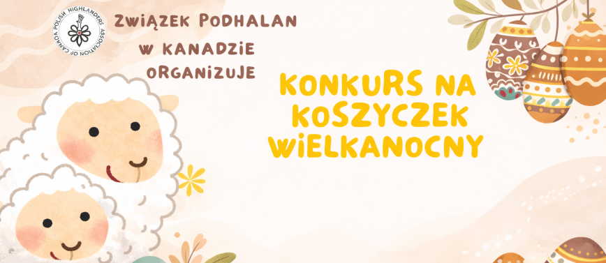 Zwiazek Podhalan w Kanadzie organizuje “Konkurs na Koszyczek Wielkanocny!” ktory odbedzie sie w Wielką Sobotę – 4 Kwietnia 2026 roku o godz. 11:00 do 12:00 w Millenium Gardens (20 Polonia Ave, Brampton, ON), przy Kościele: Parafii Św. Eugeniusza de Mazenodna. Zapraszamy dzieci i całe Rodziny!Najbardziej oryginalny i tradycyjny koszyczek.Grupy Wiekowe: 4-7 lat, 8-12 lat, 13-16 latBędą żywe Baranki!!